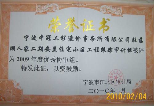 任福成協審組榮獲江北區審計局“2009年度先進協審組”稱號-中冠榮譽-中冠咨詢-中冠工程管理咨詢有限公司