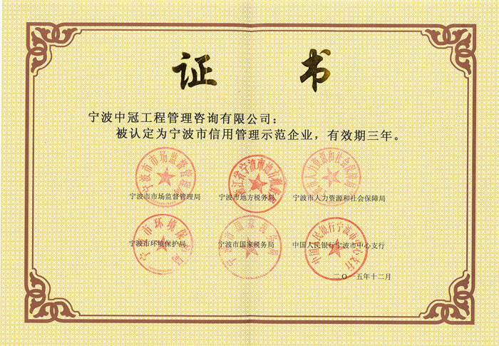 寧波市信用管理示范企業(yè).jpg-中冠榮譽-中冠咨詢-中冠工程管理咨詢有限公司